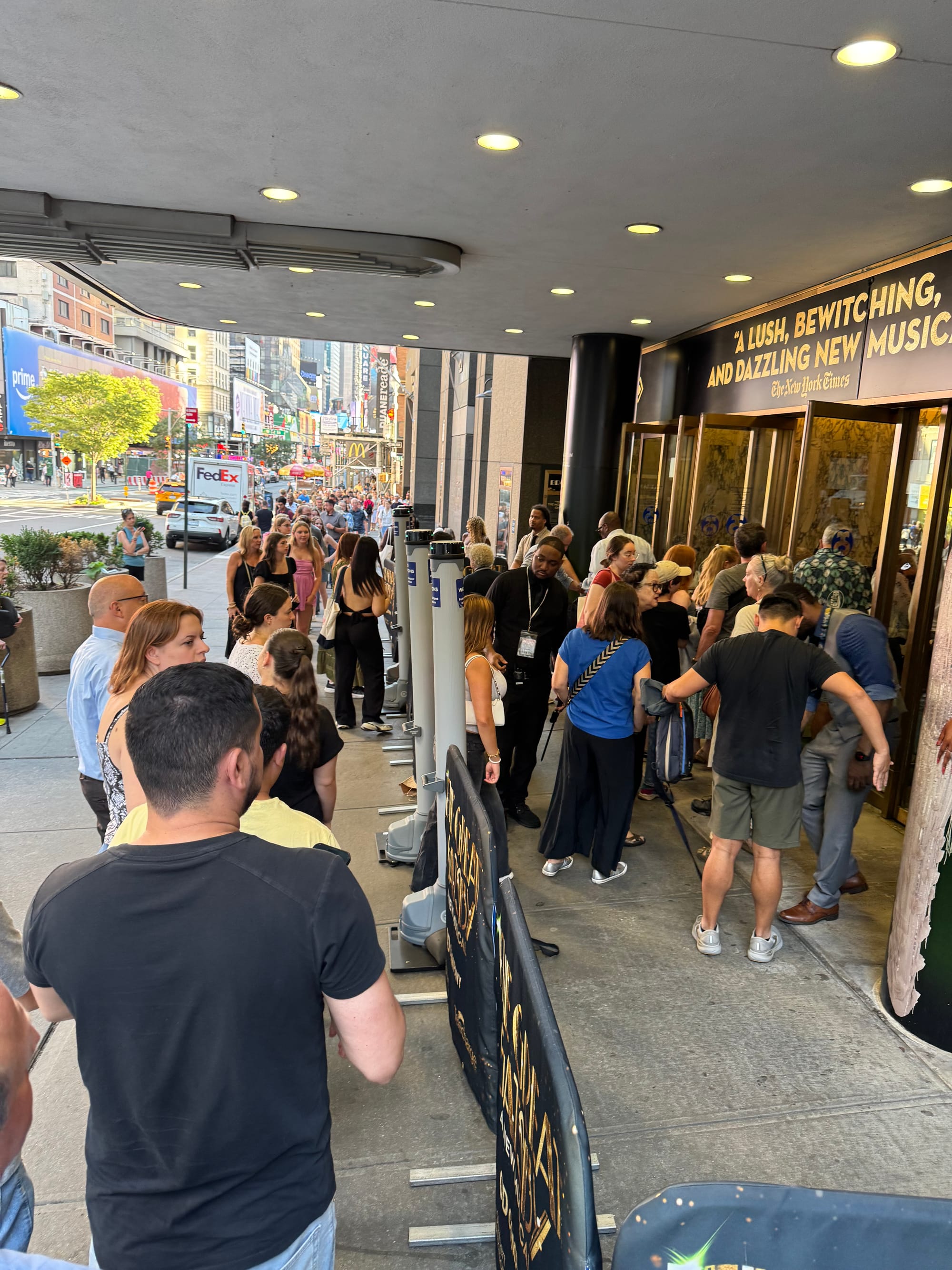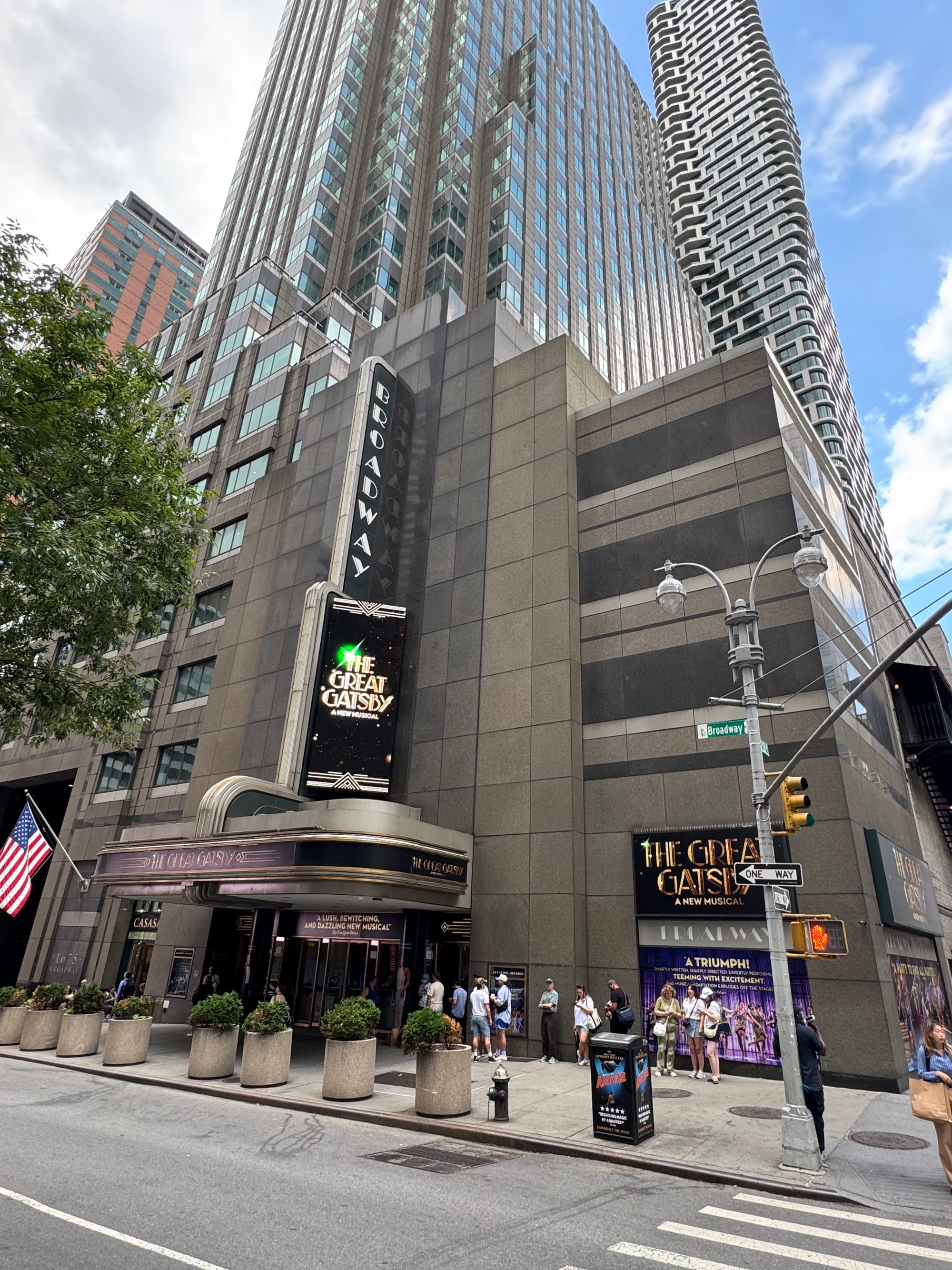 Voordeel van nog op Nederlandse tijd zitten is dat je vroeg wakker bent, dus veel aan je dag hebt. Ontbeten in het hotel. Vervolgens gaan lopen via broadway naar Times Square en naar het Broadway Theater waar de Great Gatsby musical speelt. In de rij gaan staan voor ‘rush’ tickets, 12 wachtende voor ons. Tickets gekregen voor de eerste rij (voor maar €35 pp, niet normaal).