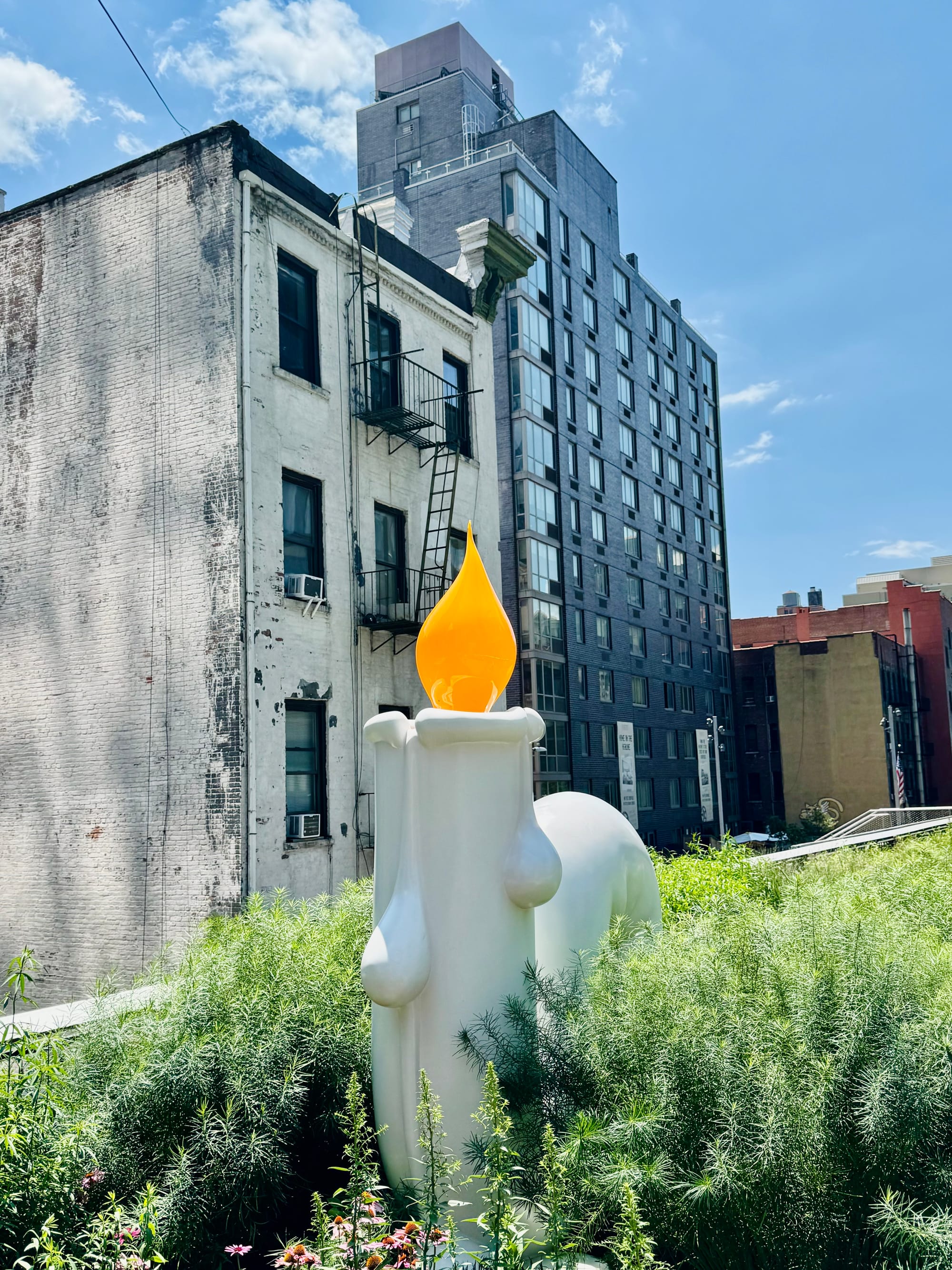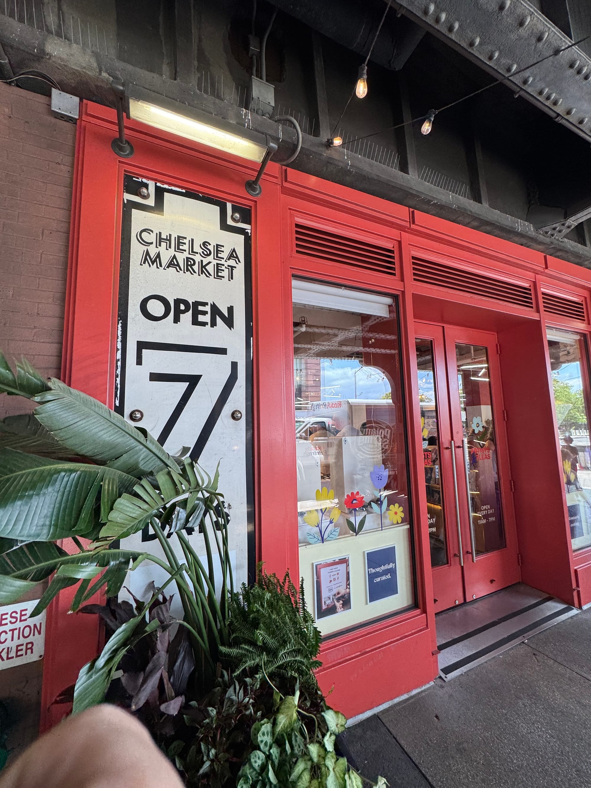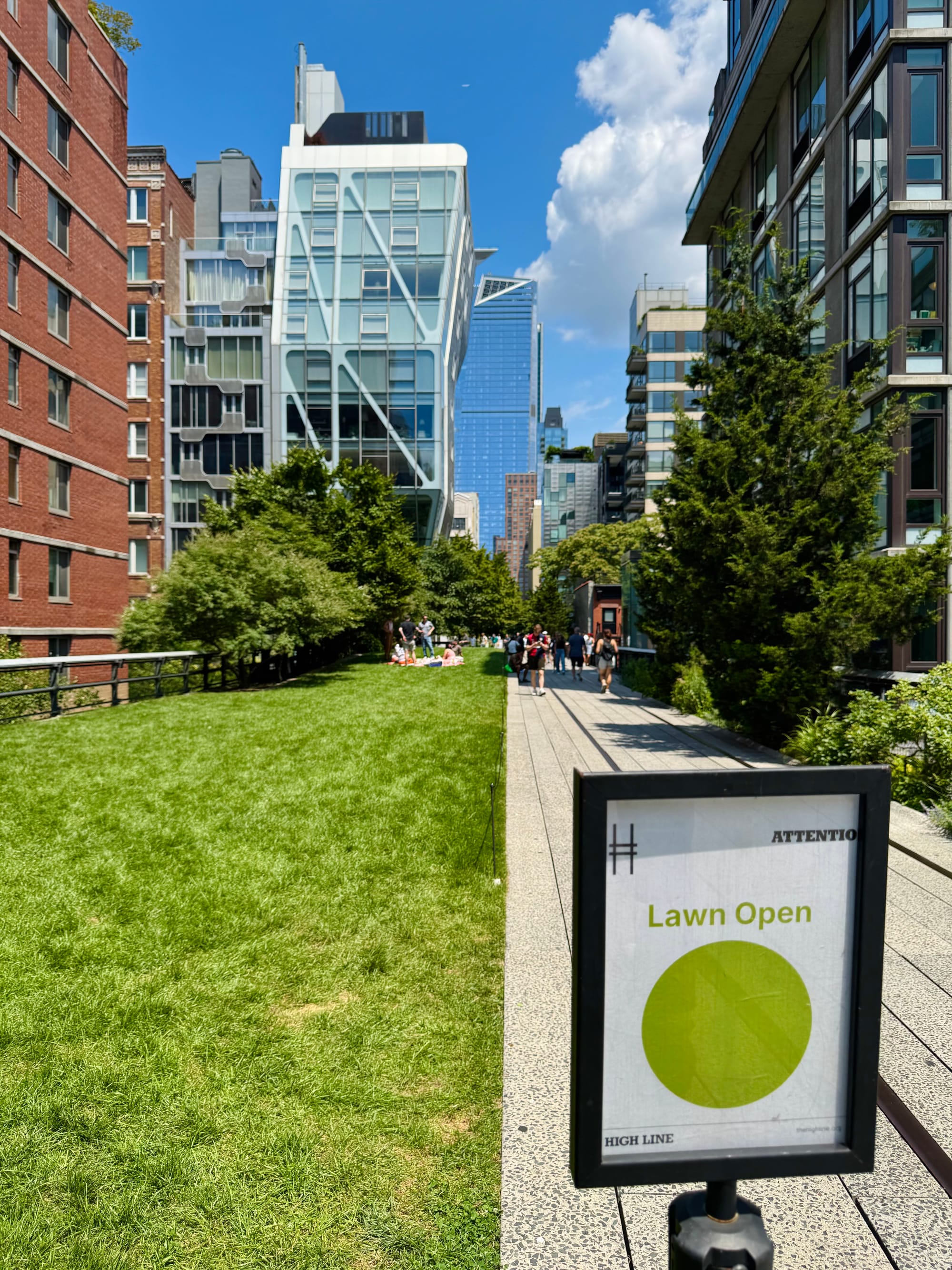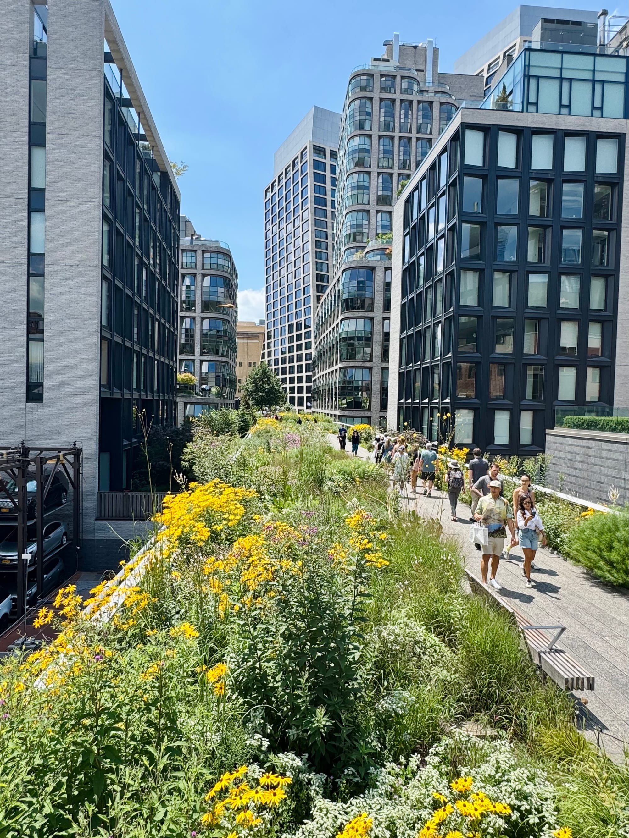 Naar Little Island gelopen (eiland op stelten). Toen sloeg de vermoeidheid/jet leg toe, en reden we met de metro terug naar het hotel. Tegenover het hotel is een klein pleintje met wat groen onderverkeer daar werken we even een snelle snack bij Shake Shack naar binnen. Vervolgens lopen we wederom dezelfde route als vanochtend om naar het theater te lopen voor de voorstelling.