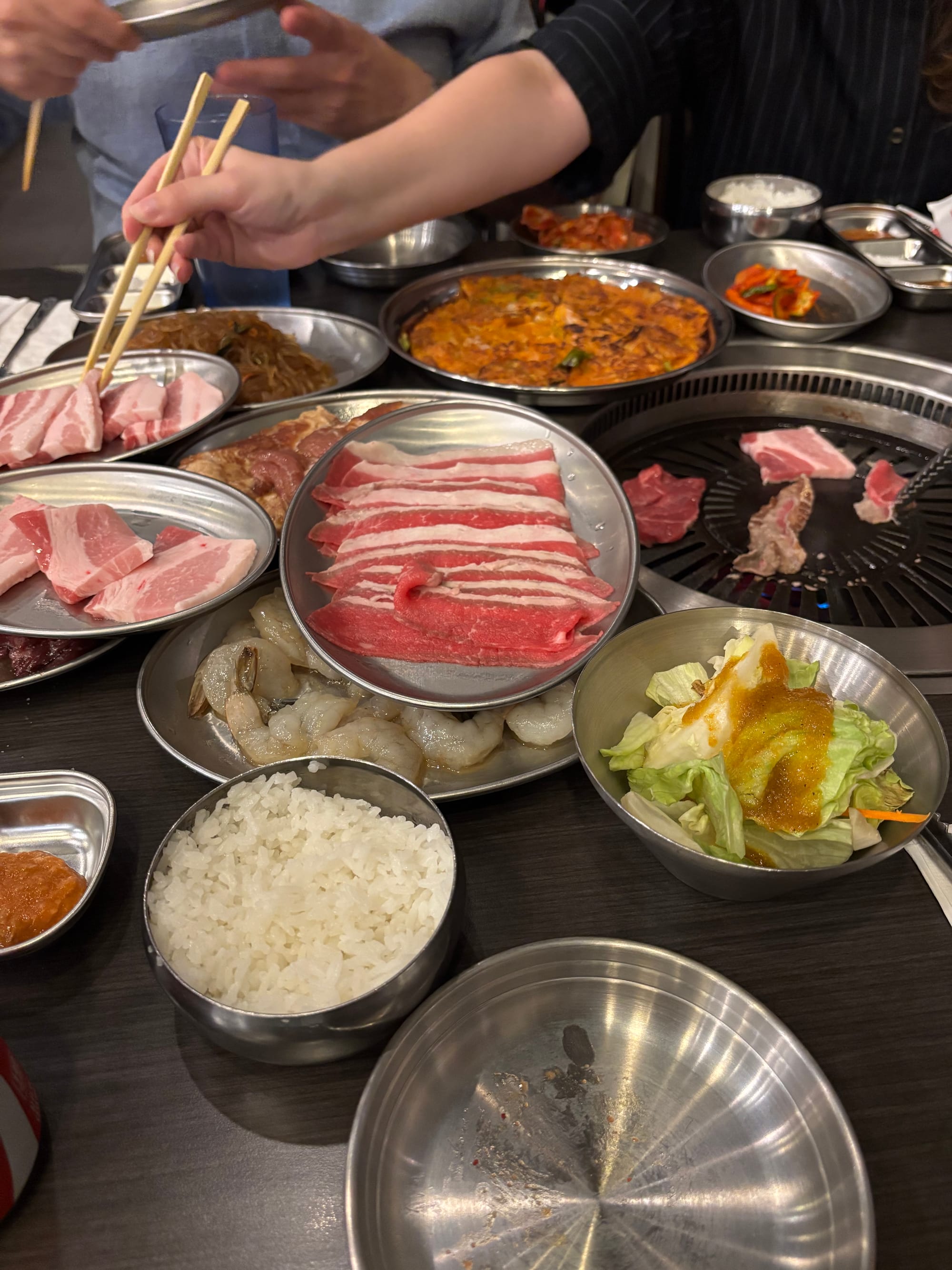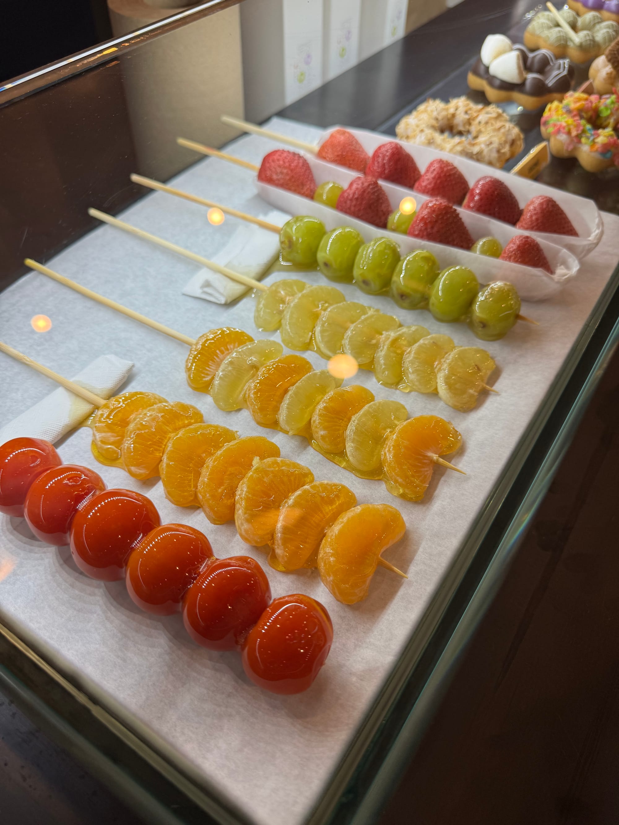 ‘s Avonds naar Korea Town gelopen (is wel een populaire, hippe buurt) om te gaan barbecueën. Korean BBQ is super leuk om te doen, alleen bestel niet (zoals wij, domme toeristen) al het vlees tegelijk. De combinatie van bijgerechten (daikon, kimchi, etc.) en vlees en/of vis voor op de barbecue is heerlijk en tegelijktijd een belevenis. Heerlijk aan je eigen tafel vlees op een mega hete BBQ leggen en binnen no-time opeten. Vol en voldaan nog een snel een Tanghulu (탕후루) gekocht. Geglaceerd fruit op een stokje.